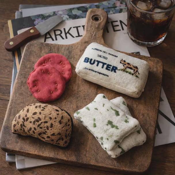Soft, simple and easy for small hands to hold, these little slices add a lovely everyday feel to imaginative play. They work beautifully on their own or mixed with other Normadot play food for cosy snack boards, sandwiches and grocery play.