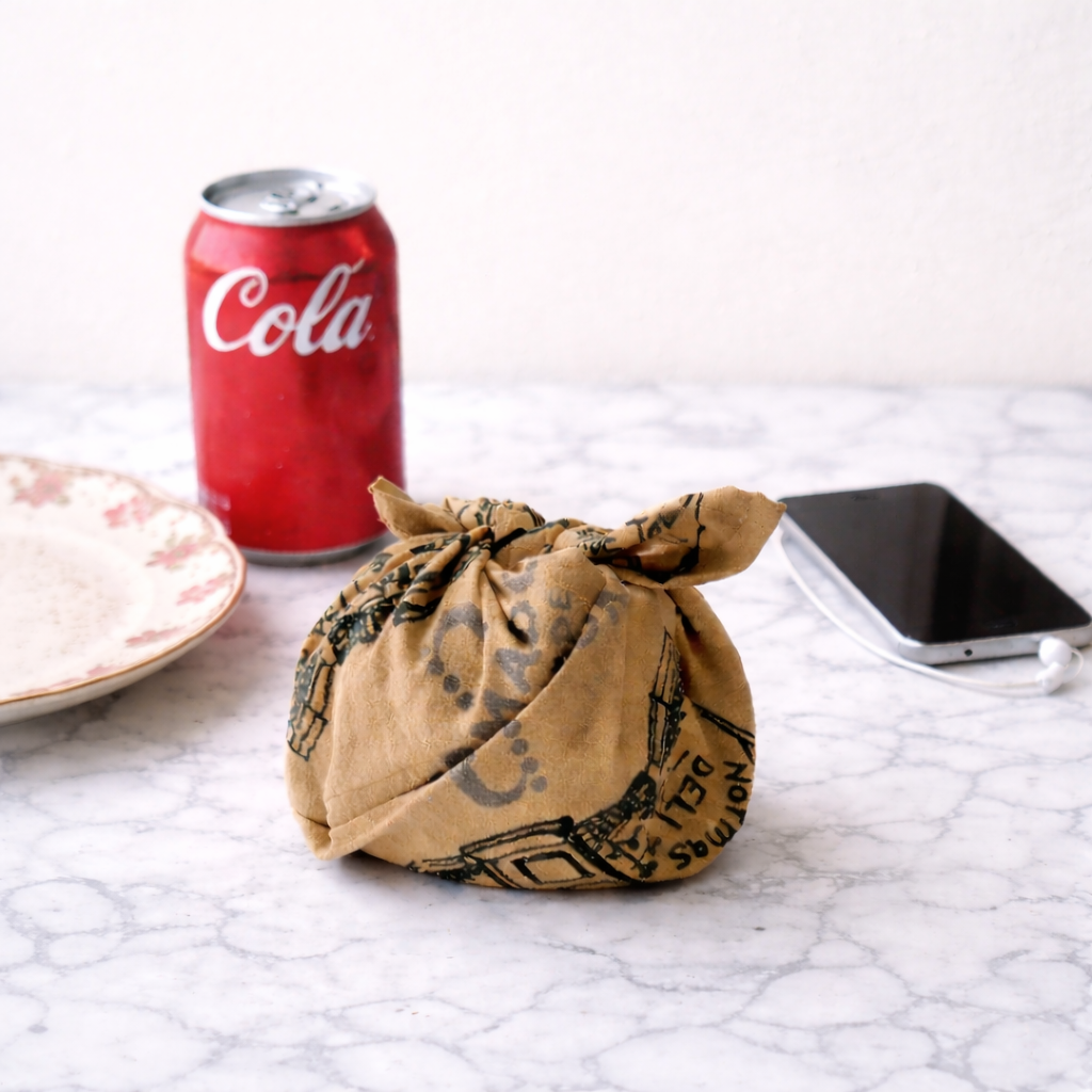 Comes packed in a cotton bento-style storage bag with silkscreen print