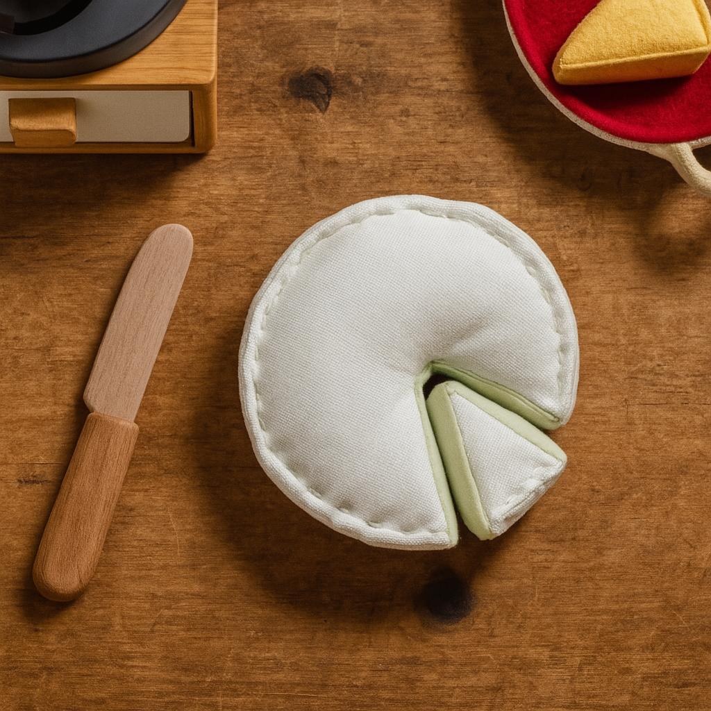 Handmade Embroidered Camembert Cheese Toy – Play Food for Kids