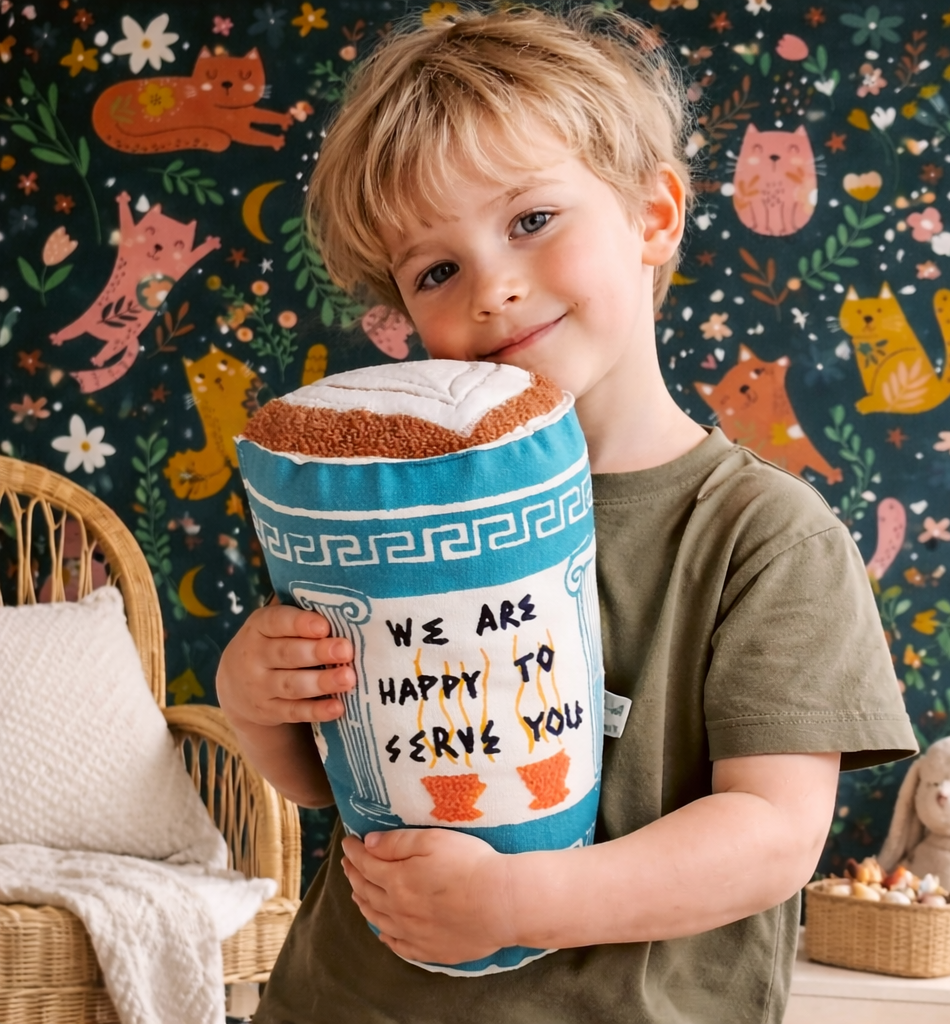 Add a playful New York touch to the children’s room with our oversized Greek coffee cup cushion — a soft and characterful homage to the iconic Anthora cup.